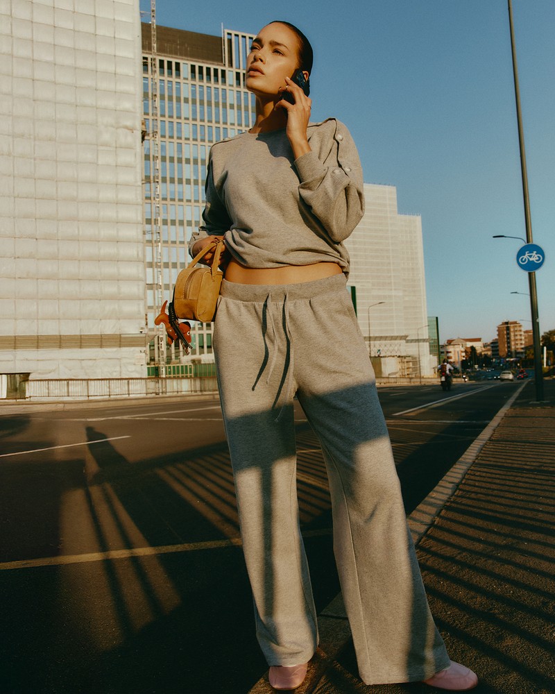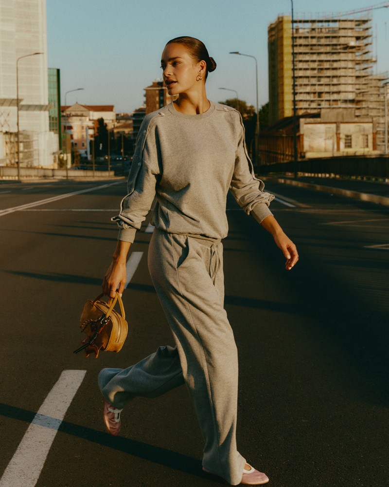 Η συλλογή συνεχίζεται με το cotton blend που μετατρέπει το loungewear σε ένα δυναμικό σύνολο που μπορεί να φορεθεί και εκτεθειμένο. To απαλό πουλόβερ, με ενισχυμένα ανοίγματα και κουμπιά στους ώμους και κατά μήκος των μανικιών, προσθέτει μία παιχνιδιάρικη και εκλεπτυσμένη πινελιά, ιδανικό για να συνδυαστεί με φαρδιά παντελόνια palazzo για casual και χαλαρή κομψότητα.