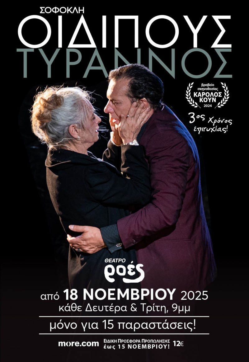 Μετά από δύο επιτυχημένες χρονιές σε Ελλάδα και εξωτερικό, η βραβευμένη παράσταση συνεχίζει τη διαδρομή της σε νέο χώρο, το Θέατρο ΡΟΕΣ, εγκαινιάζοντας έναν κύκλο παραστάσεων από τις 18 Νοεμβρίου έως 6 Ιανουαρίου 2026.