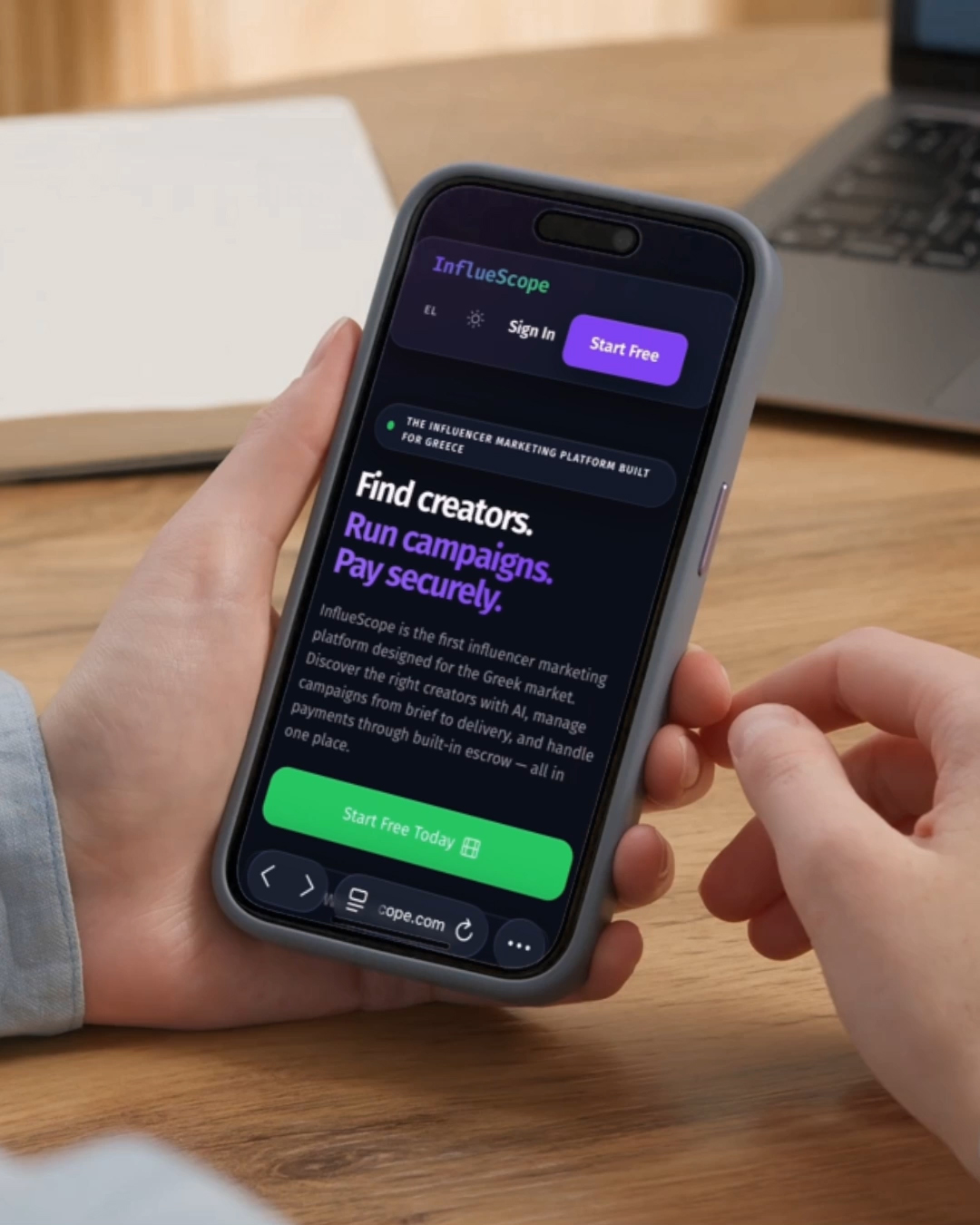 Η InflueScope καλύπτει όλο τον κύκλο μιας καμπάνιας — από την αναζήτηση και επιλογή creators έως την υλοποίηση, την ανάλυση και τέλος τη διαχείριση πληρωμών, προσφέροντας μια ολοκληρωμένη και διαφανή λύση για την αγορά.